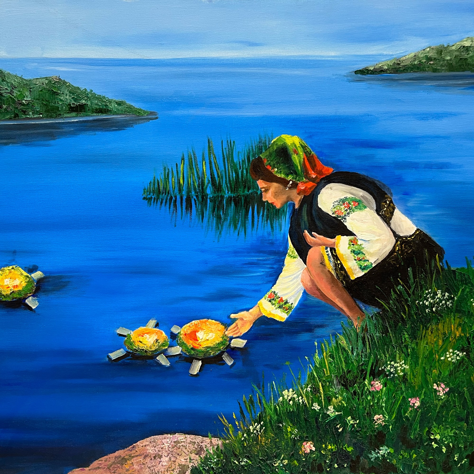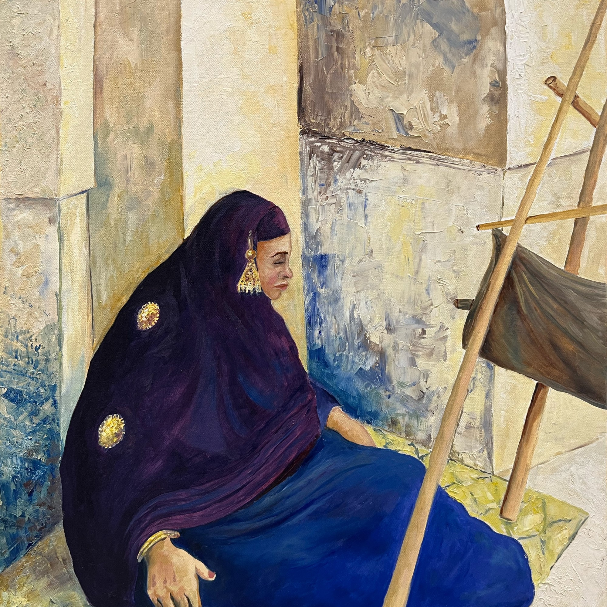 I am an artist that was born in Poland and is currently living in Kuwait with my husband and kids. I currently work as an English teacher however my job has not stopped me from pursuing my practice. I have been honing my skills in art since I was young. I paint in both oils and acrylic on canvas; focusing mostly on oil paintings. I have created my own little studio at home for my passion to be able to freely paint in a place that will keep me busy during leisure. I am deeply inspired by the beauty and diversity of the natural world, as well as the rich cultural traditions that shape our understanding of it, making my work heavily influenced by nature and different cultures around the world, from different fabrics and textures. Turning the things that I find beautiful in the world into artworks on my canvas.